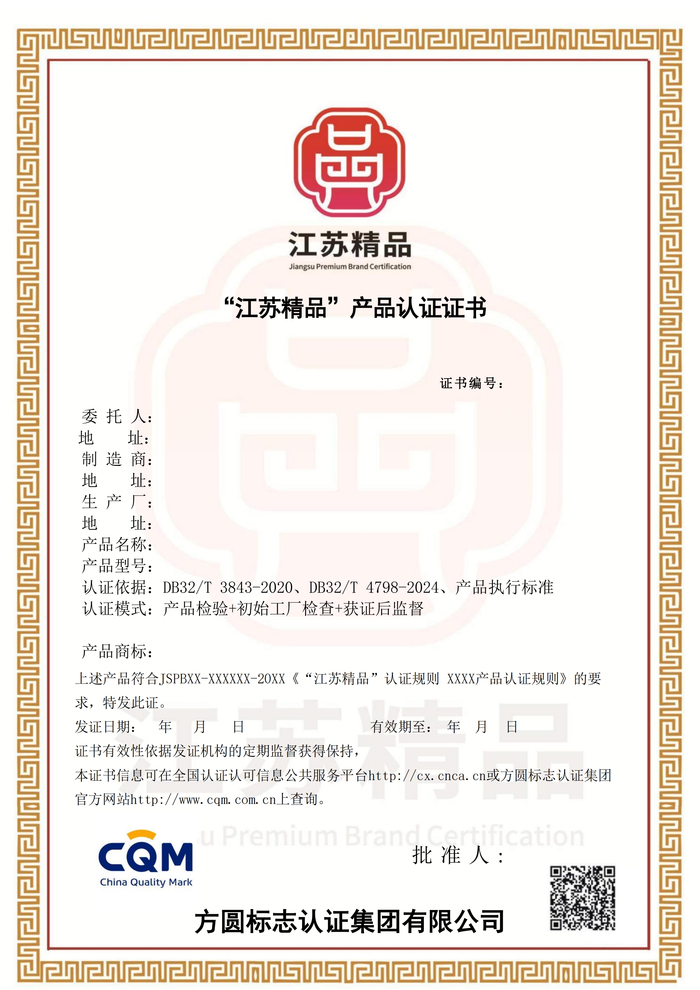 2. “江苏精品”认证证书: