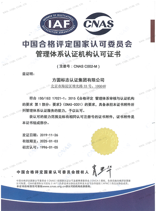 >中国合格评定国家认可委员会认可证书