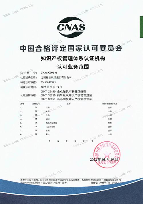知识产权管理体系认可证书