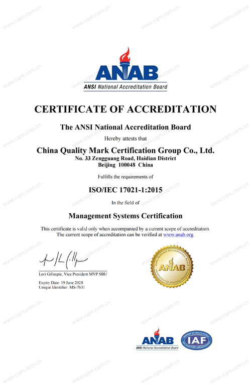 ANAB认可证书
