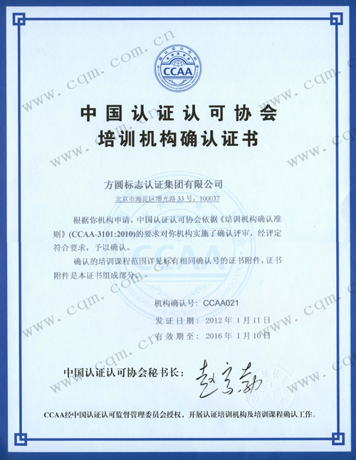 >中国认证认可协会确认证书