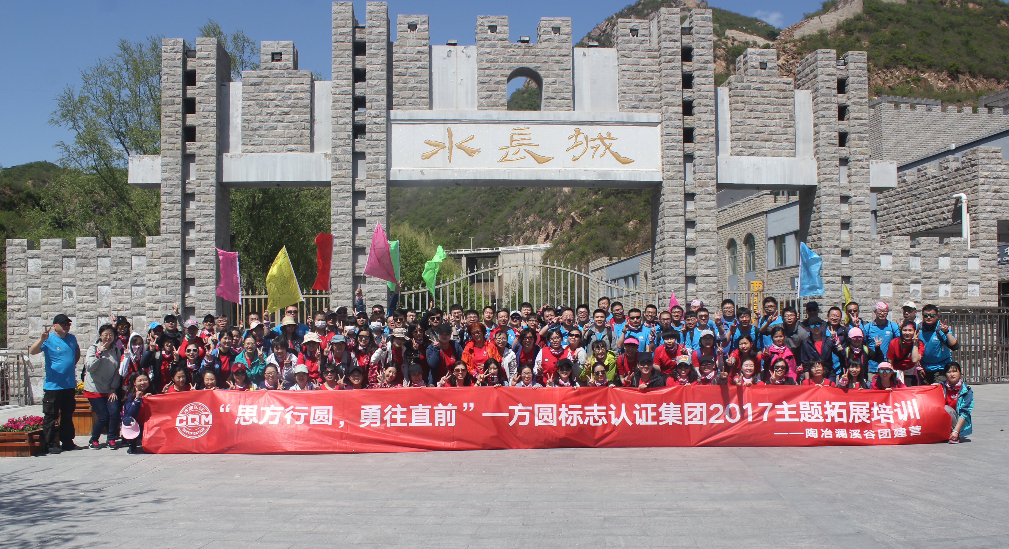 抵达黄花城水长城培训场所后,大家在培训教练的带领下被分成九个小组,经过各小组的一番头脑风暴,九个个性鲜明的团队名称、响亮的团队口号、嘹亮的队歌以及富有特色的队旗逐一精彩亮相,“小西湖场地趣味定向寻宝—湖底的秘密”拓展培训活动的序幕也正式拉开。各队手持“通关宝典”,比拼体力脑力,共同配合,拯救了“被诅咒的水怪”,攻克了“行走的板栗王”,挑战了“语言魔王”……活动过程中所有团队成员积极参与,迎难而上,队员之间相互支持,相互鼓励,最终,所有团队均圆满通关,完成了最终任务——方圆梦想拼图。