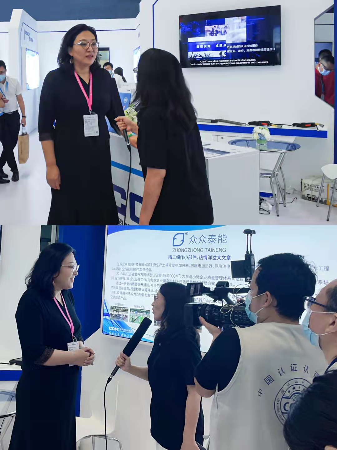 论坛结束后,冀晓东还在CQM的展台前接受了《中国认证认可》杂志的直播采访,并向广大网友隆重推介了本次作为CQM小微企业质量提升行动特邀企业代表的江苏众众电热科技有限公司、江苏户传科技有限公司和郑州广汇集团食品有限公司。