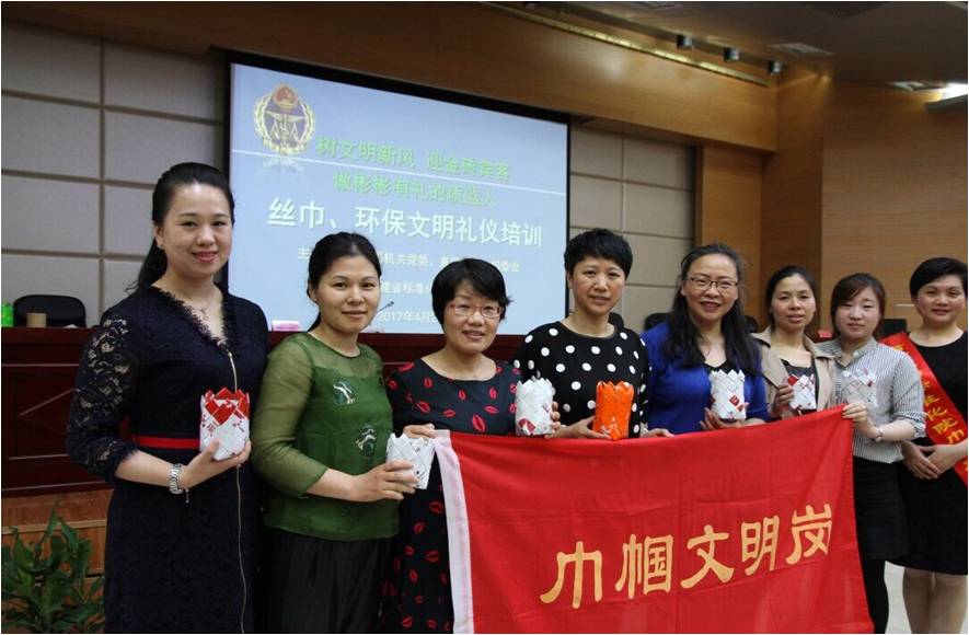 本次培训由福建省质监局直属工会主办、直属妇委会承办,省标准化院党办兼文明办主任林京主讲。参加培训的女员工通过“DIY”(自己动手做)的方式学习交流“容音言行心”五个方面的文明礼仪知识和丝巾系法、环保纸编笔筒技能,现场见证用丝巾瞬间扮靓形象的神奇,亲身体验将一堆废纸变成实用工艺品的成就感。大家纷纷表示,本次培训寓教于乐、动手动脑,收获满满。