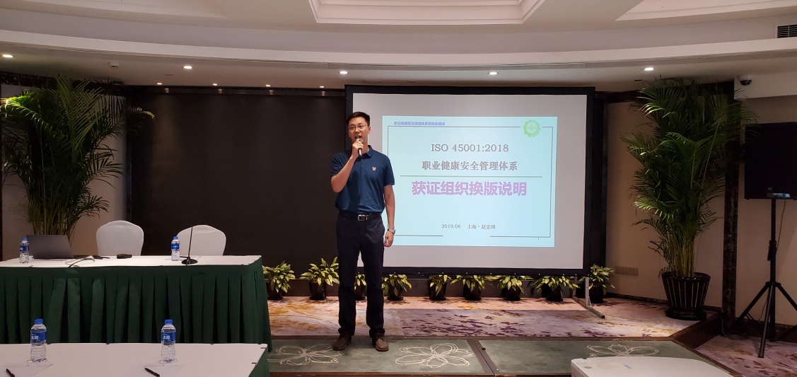 时间:2019年06月28日 近日,方圆上海公司在上海兴华宾馆召开 ISO 45001:2018 职业健康安全管理体系获证组织换版说明会。届时参加本次说明会的获证组织共计100余家,共计170余人。