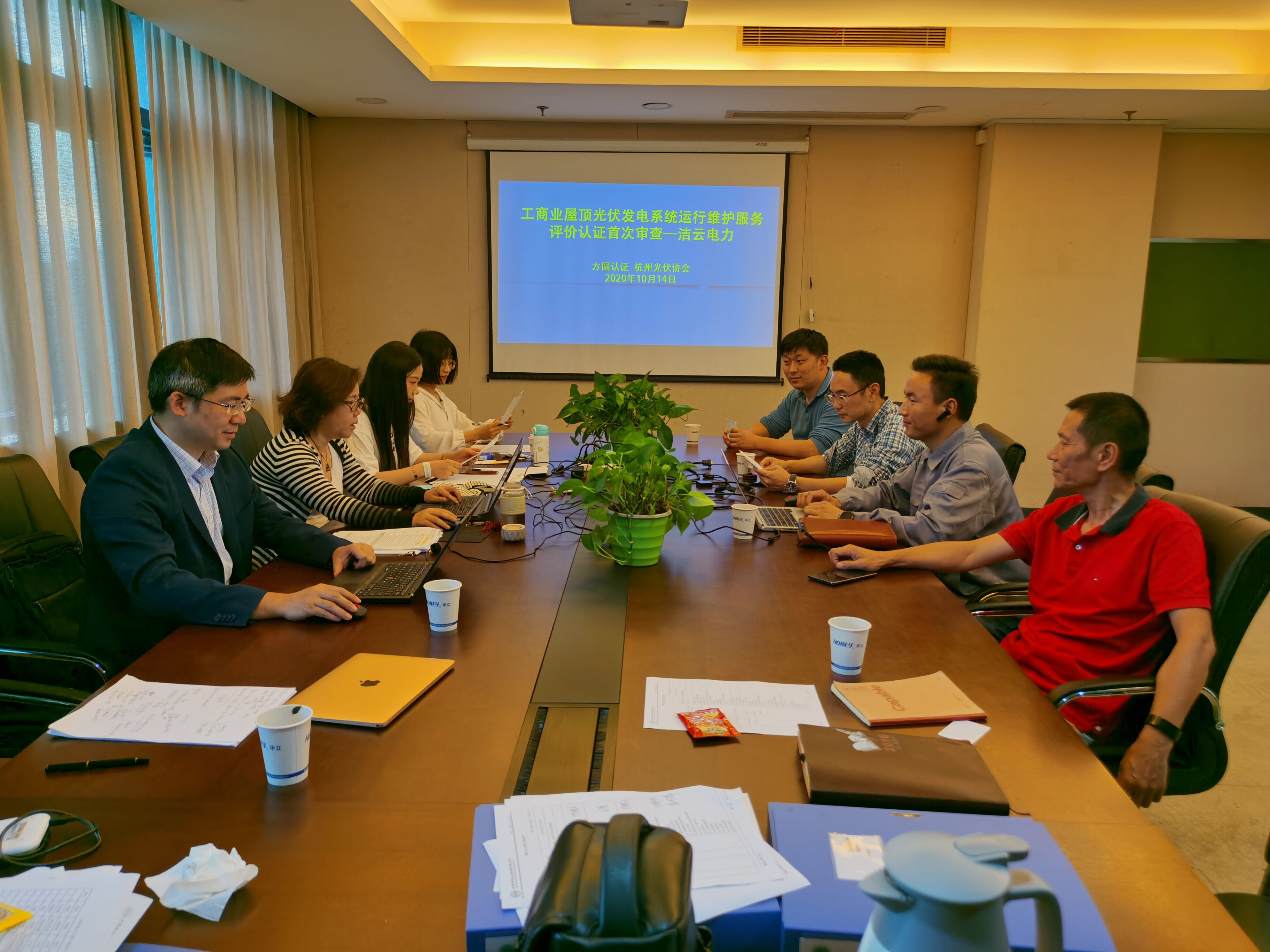 2020年年初方圆浙江公司联合杭州光伏协会开展屋面光伏系统运维华体会(中国),从项目立项、人员培训、项目调研、项目开发历时8个月。2020年10月14日启动了第一家洁云电力工程(杭州)有限公司的现场评价,采用现场服务水平评价结合顾客满意调查的方式对照《附加型工商业屋顶光伏发电系统运行维护》标准及《附加型工商业屋顶光伏发电系统运行维护认证评价规范》,从服务能力、运行维护、设备管理、安全生产、文明施工、新技术应用、运维绩效7个维度进行评价,对水泥屋面,彩钢瓦屋面等不同类型的运维项目进行抽查,检查中采用了无人机等新的审核工具进行评价。