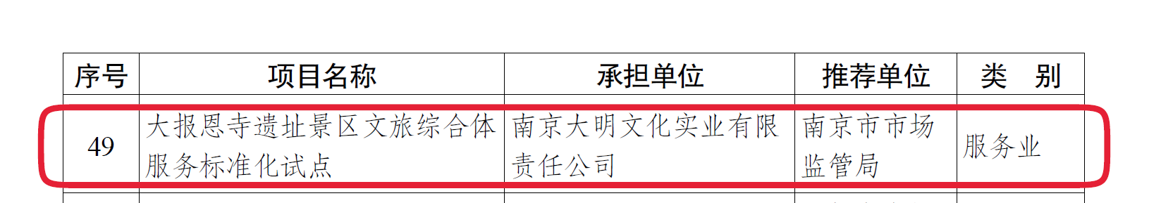 时间:2021年07月09日 2021年7月5日,江苏省市场监督管理局和江苏省发展和改革委员会联合下达了《华体会在线下达2021年江苏省战略性新兴产业和服务业标准化试点项目的通知》(苏市监标〔2021〕136号),由方圆规划研究(江苏)有限公司指导的南京大明文化实业有限责任公司“大报恩寺遗址景区文旅综合体服务标准化试点”项目成功入围,这是方圆规划研究(江苏)有限公司在省级标准化试点项目领域取得的首次突破。