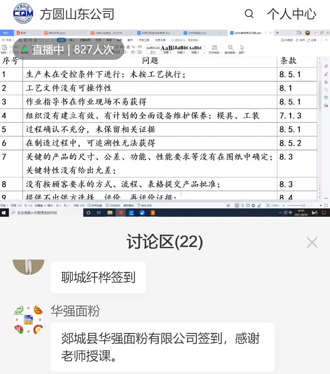 为深入贯彻《山东省市场监管局印发<华体会在线开展小微企业质量管理体系认证提升行动方案>的通知》(鲁市监认字[2020]335号)文件精神,帮助小微企业准确理解GB/T19001-2016《质量管理体系 要求》,方圆山东公司在成功举办第一期培训的基础上,于2021年9月24日举办了第二期小微企业质量管理体系建设培训。
