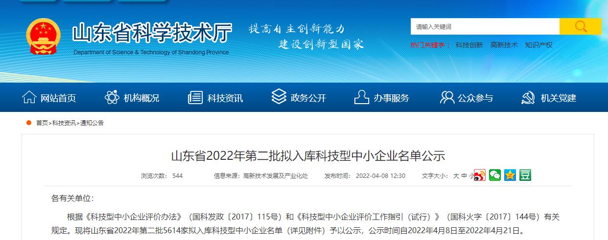 时间:2022年05月17日 近日,根据《科技型中小企业评价办法》(国科发政〔2017〕115号)和《科技型中小企业评价工作指引(试行)》(国科火字〔2017〕144号)有关规定,经省市科技部门审查并完成2022年第二批拟入库科技型中小企业名单公示后,方圆标志认证集团山东有限公司被认定为山东省2022年第二批科技型中小企业。科技型中小企业是指依托一定数量的科技人员从事科学技术研究开发活动,取得自主知识产权并将其转化为高新技术产品或服务,从而实现企业的可持续发展的企业。认定为科技型中小企业为方圆山东公司的可持续发展打下坚实基础。