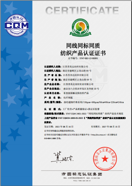 为畅通国内市场销售渠道,打响品牌知名度,江苏苏美达纺织有限公司申报“化纤绒毯”进行“三同”认证,同时也提出“三同”工作和绿色化发展结合的需求。经过前期精准策划,方圆认证通过简化、优化认证程序,采信相关认证、检测报告等方式,实现一次认证,同时为企业发放“三同”认证证书和绿色产品两张认证证书,进一步降低认证成本,减轻企业负担。